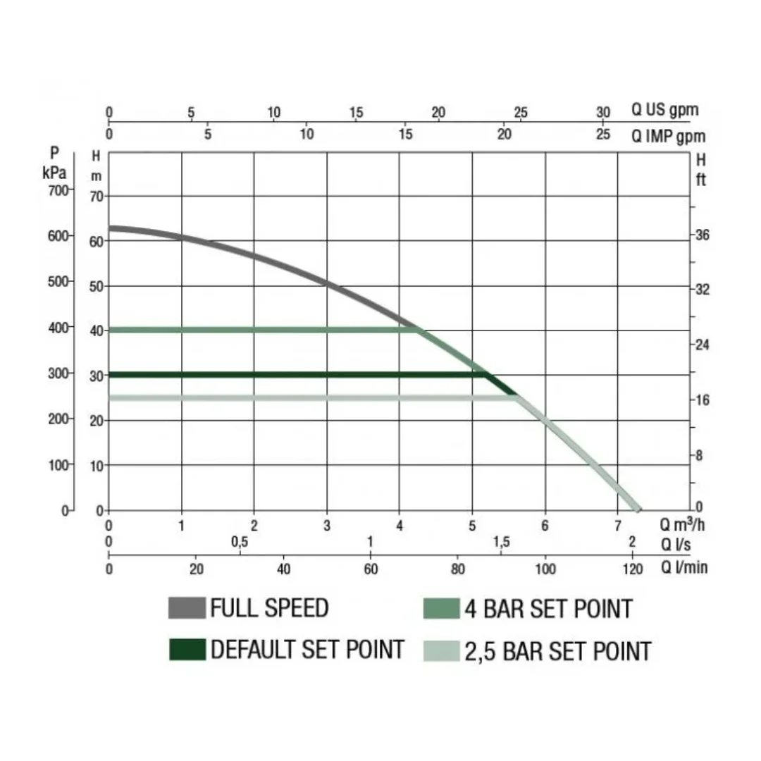 The Single Pump WaterBoost 300 Premium will produce 80 litres per min @ 3 Bar